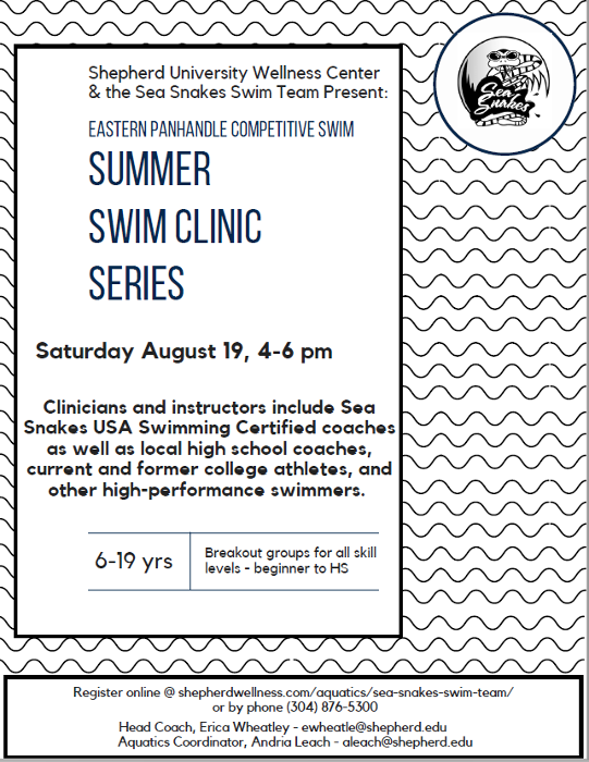 Attached is a flyer for the Swim Clinic on August 19th. This is a great opportunity to get back in the water after a long break and also get a jump-start on the season by working on some skill and stroke technique. We have gathered a great group of coaches and clinicians ready to work with swimmers on topics such as Distance Swimming, Beginning Race Dives and Turns, Strength Training Season Planning, and technique in each of the four competitive strokes. We hope to see you there – invite your friends!