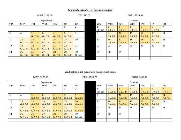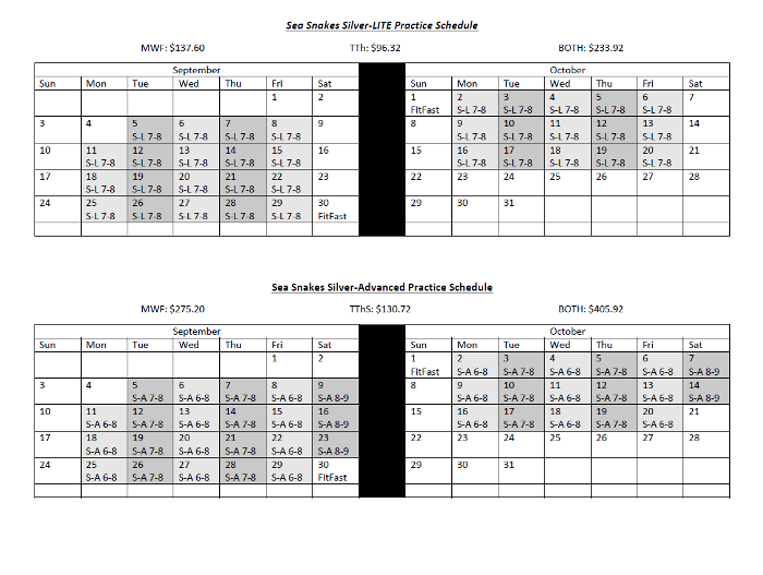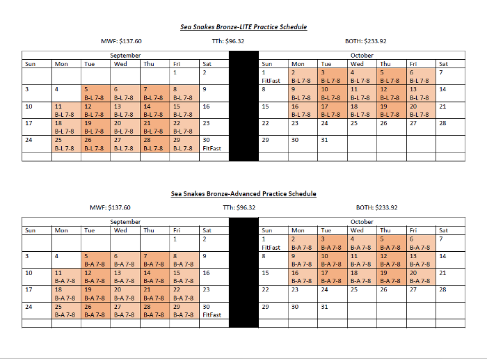 Registration for current/prior Sea Snake Participants opens August 15-19th. You will find the calendar and pricing for the first session attached. Below is group placement approval for swimmers who participated in Summer Swim 2023. Calendars and session pricing for each group is also attached. Within your assigned practice group you may register for however many days you family’s schedule, other activities and sports etc, allow. (Ie you can just M/W/F practices, just T/Th practices, or choose both for 5 days of practice. We can not make other combinations such as M/W/Th. There is no penalty for missing practices except you forfeit the instruction from that day.)