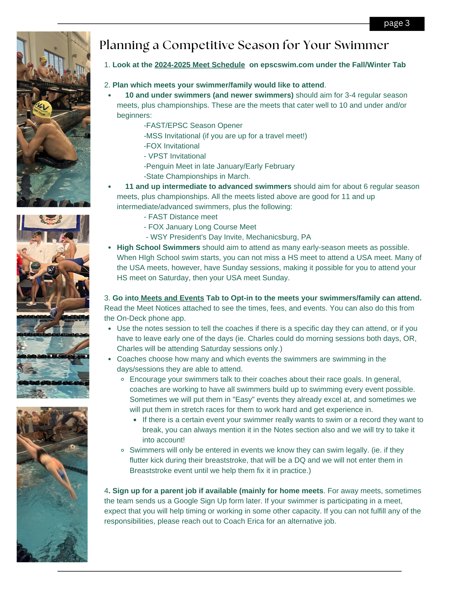 - Sign up your swimmer for their USA Swimming membership by Sept. 18 to be able to be in the EPSC/FAST Home Meet. Here is the team link: https://omr.usaswimming.org/omr/welcome/2FDE0F21515741