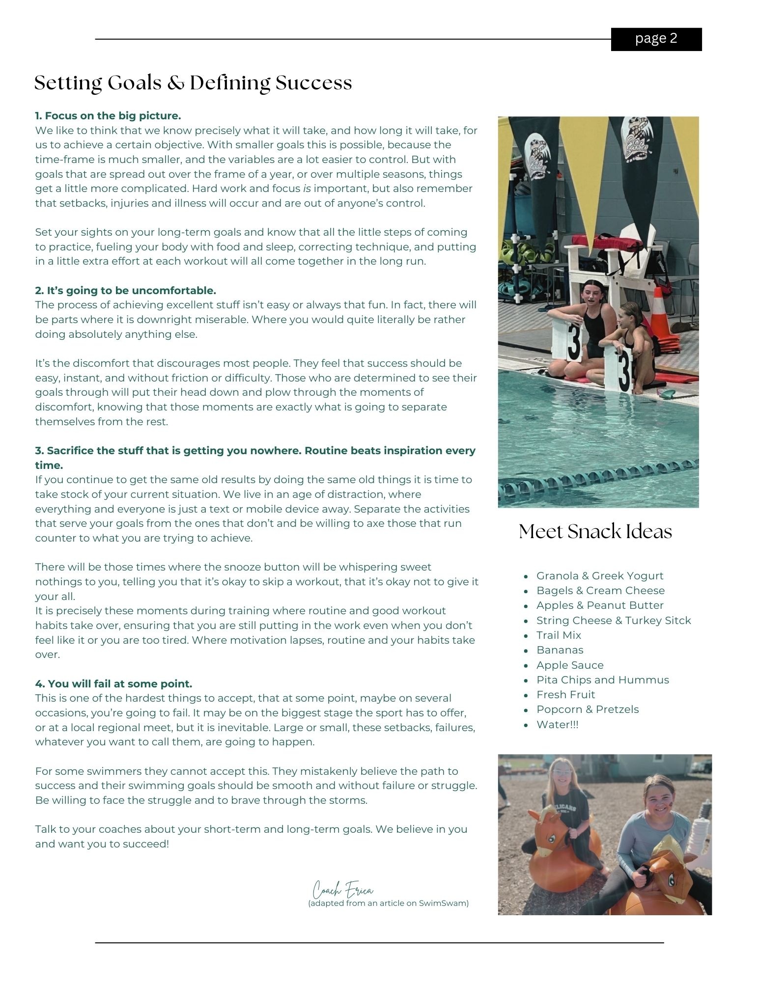 Please review this email and the attached files for meet results, schedule reminders, activity announcements, and billing notes. To find this information again and past emails that have been sent out, check out the News page on our team website.
