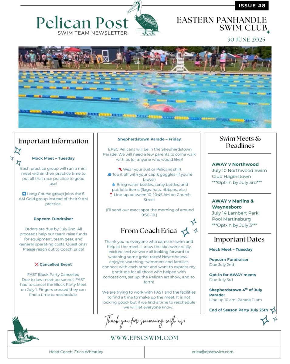 We’re diving into another exciting week with the EPSC Pelicans! From meets to mock events, parades to popcorn, there’s a lot happening both in and out of the pool.