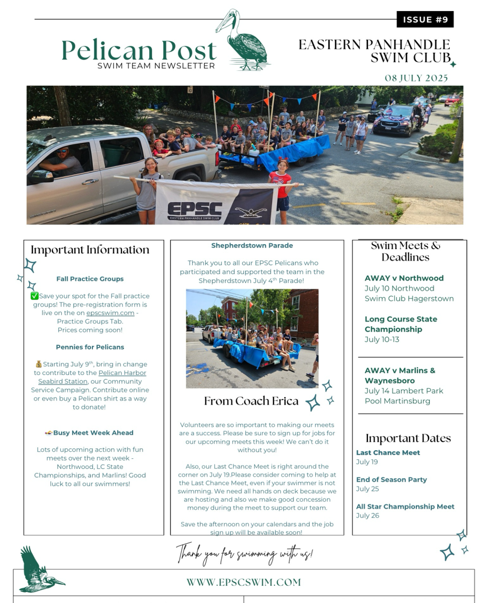 Hope everyone had a wonderful July 4th! We are back in action with lots of information to pass along to you this week. Check out the Pelican Post for the following: