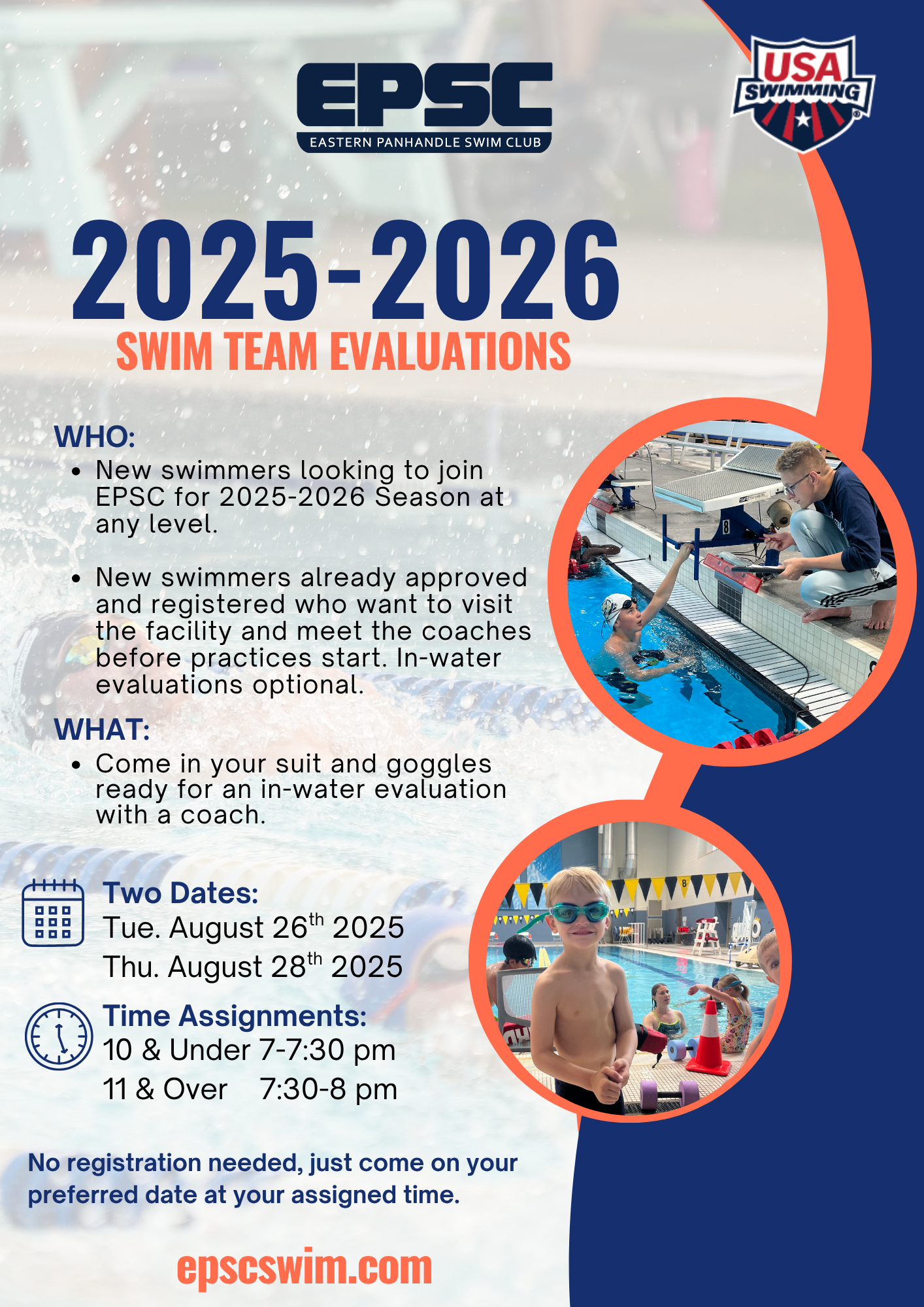 - We would like to see all new swimmers in the water so we can appropriately place them in their practice groups. See flyer attached for dates and times. If you can not make either of these dates, please reach out to me.