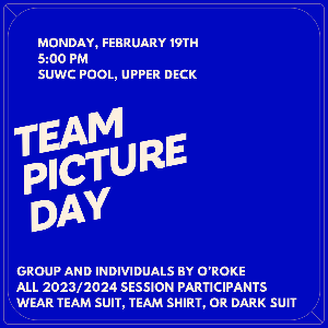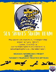 The following information and invitations are for all Sea Snake Participants from the entire 2023/2024 Fall/Winter Season. We would like all swimmers from any session this year to please join us for the following: Team Pictures- When: Monday, February 19th, 2024 5-6:30 pm Please be on time, we will have the group picture as soon as we can. Individual pictures will be taken before and after the group picture. Where: At the SUWC pool, meet on the upper deck. Wear: Wear your competition suit, another plain color suit (navy/black) or...